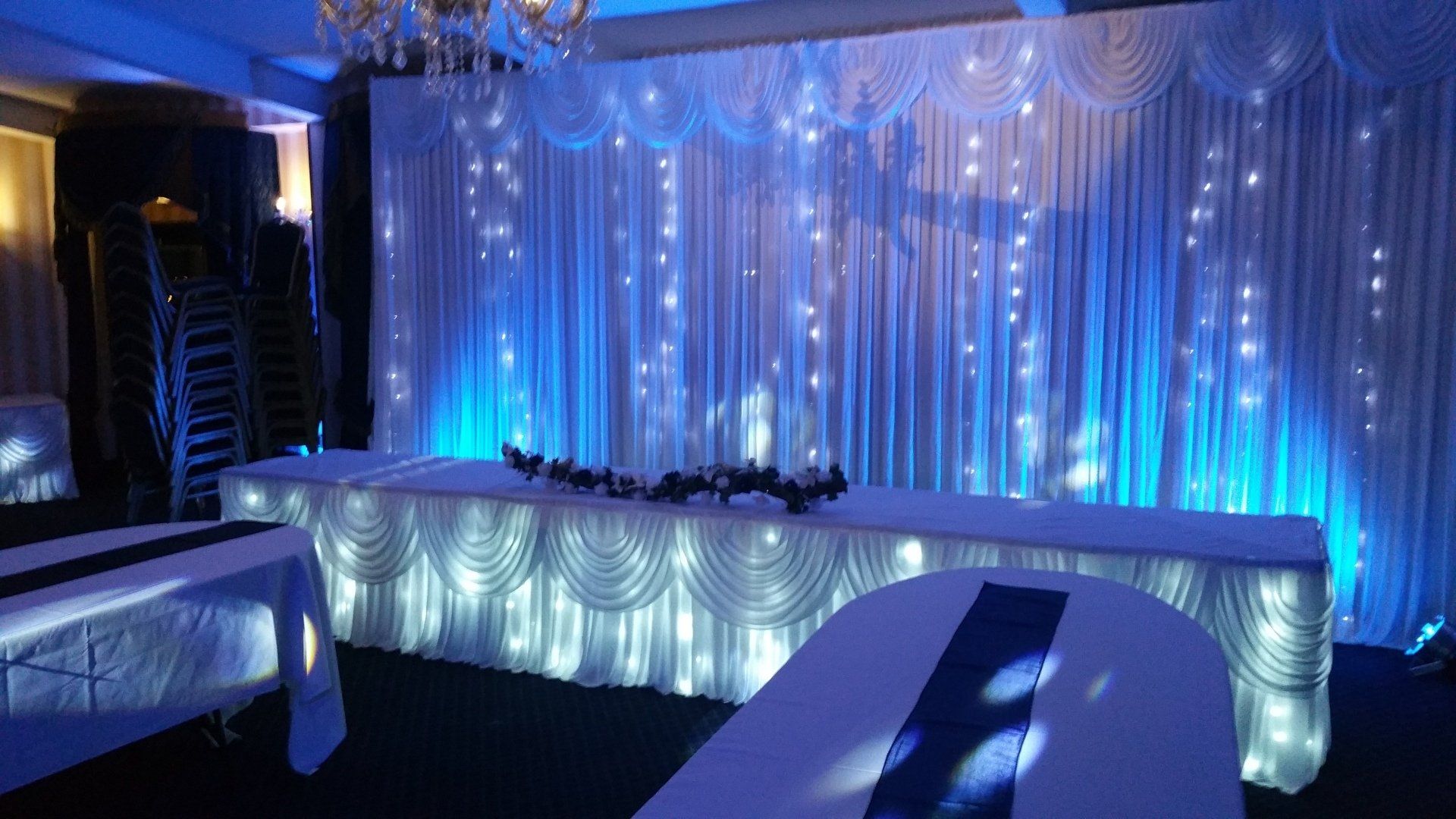 Our Premium Heavy Weight Italian Silk ( NOT cheap velour or organza) Backdrop & Skirts look amazing with their COOL WHITE twinkle lights with selectable patterns from £235 for All 3.